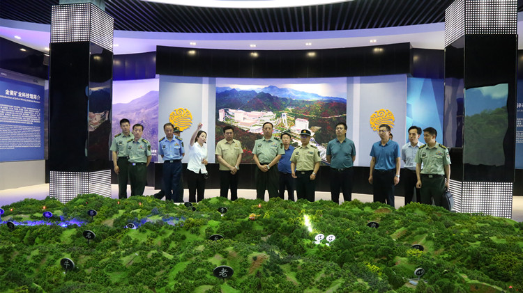 7月10日,省軍區(qū)司令員王文清在有關(guān)方面領(lǐng)導(dǎo)陪同下,蒞臨金徽股份調(diào)研企業(yè)編兵和綠色礦山建設(shè)等工作。