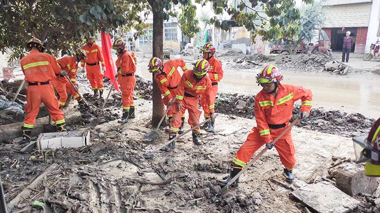救援中隊隊長閆瑋回憶:“我們是第一批進(jìn)駐稻畦和立亭村的救援隊伍,在我們駐地附近的黨大媽,每天用自家臨時搭建的灶臺為我們燒熱水,她盡自己的最大能力,讓隊員們喝上一口熱水。在進(jìn)駐災(zāi)區(qū)第2天,立亭村黨支部書記與當(dāng)?shù)厝罕娝蛠砹?箱方便面和2箱礦泉水,他說現(xiàn)在自來水沒通,他們這里的井水含堿很高,長期飲用會吃壞肚子;駐地是棄用多年的庫房,沒有床鋪被褥,晚上蚊蟲特別多,你們一定要注意安全……”