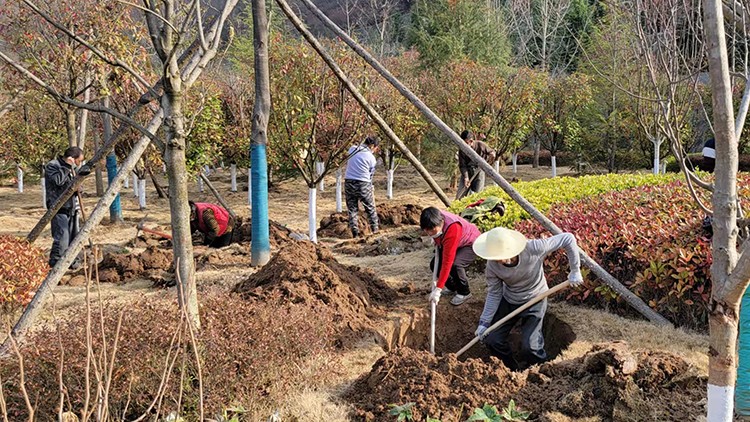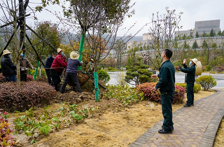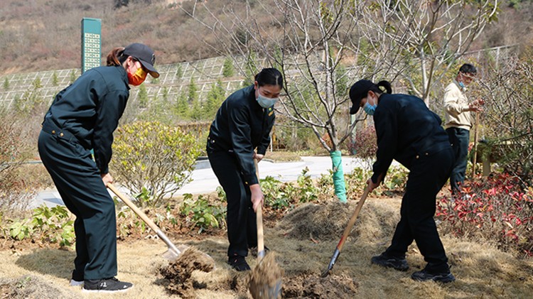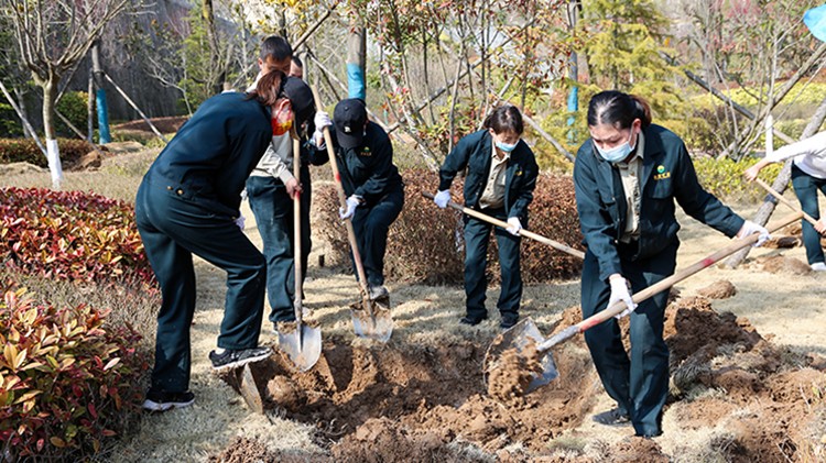 植樹活動現(xiàn)場,大家在做好疫情自我防護(hù)的同時(shí),干勁十足。他們?nèi)迦俗园l(fā)成組,相互配合、默契協(xié)作,或扶樹填坑、或揮鍬培土、或提桶澆水,每個環(huán)節(jié)銜接有序,合力栽下一棵棵樹苗,也共同播下疫散春來、華枝春滿的勃勃生機(jī)。經(jīng)過幾個小時(shí)的努力,一株株新栽種的冬青、石楠、廣玉蘭、雪松等樹木迎風(fēng)而立,為金徽股份增添了一片片濃濃春意。