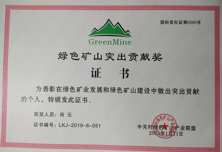 綠色礦山突出貢獻獎是經科技部國家獎勵辦公室批準,受政府支持的面向綠色礦山建設一個新的獎項,也是我國專門針對綠色礦山建設設立的國家級獎項。